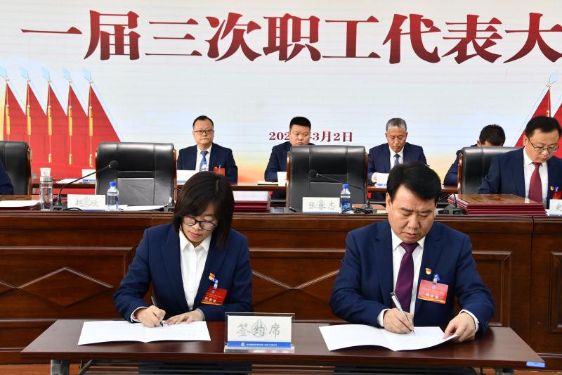 ▲大會簽署了《集體合同》《工資專項(xiàng)集體合同》《勞動安全衛(wèi)生專項(xiàng)集體合同》《女職工特殊權(quán)益保護(hù)專項(xiàng)集體合同》