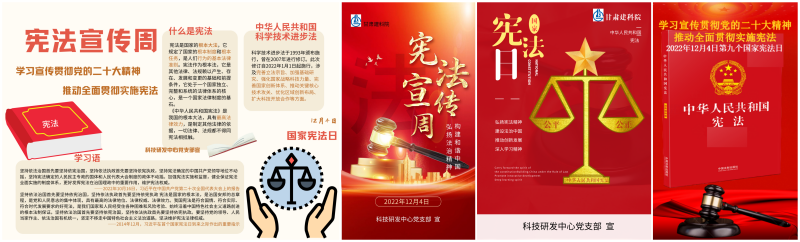 12月4日至8日,科技研發(fā)中心黨支部圍繞“學(xué)習(xí)貫徹黨的二十大精神,推動(dòng)全面貫徹實(shí)施憲法”主題,舉行了“憲法宣傳周”系列活動(dòng)。組織干部職工集中學(xué)習(xí)了《憲法》《民法典》《公司法》《安全生產(chǎn)法》《中華人民共和國(guó)反電信網(wǎng)絡(luò)詐騙法》和《中華人民共和國(guó)科學(xué)技術(shù)進(jìn)步法》等法律法規(guī)、開(kāi)展憲法宣傳海報(bào)設(shè)計(jì)和憲法知識(shí)競(jìng)答活動(dòng),督促引導(dǎo)廣大職工知法、學(xué)法、懂法、守法、用法,樹(shù)立憲法思維,筑牢法律防線,切實(shí)維護(hù)憲法權(quán)威,激發(fā)了廣大職工參與憲法學(xué)習(xí)的積極性和主動(dòng)性。