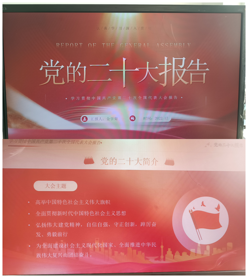 金學(xué)菊從深刻理解把握過去五年工作和新時(shí)代十年偉大變革的重大意義、習(xí)近平新時(shí)代中國(guó)特色社會(huì)主義思想的世界觀和方法論、以中國(guó)式現(xiàn)代化全面推進(jìn)中華民族偉大復(fù)興的使命任務(wù)、以偉大自我革命引領(lǐng)偉大社會(huì)革命的重要要求、團(tuán)結(jié)奮斗的時(shí)代要求等方面,對(duì)二十大精神作了系統(tǒng)宣講,讓大家進(jìn)一步深刻認(rèn)識(shí)到二十大精神對(duì)我們所處的這個(gè)時(shí)代和國(guó)家的重要意義。隨后黨員代表結(jié)合工作實(shí)際作了主題發(fā)言。他們表示,在今后的學(xué)習(xí)、工作中要切實(shí)把二十大精神轉(zhuǎn)化為強(qiáng)大的精神動(dòng)力,不斷武裝頭腦、指導(dǎo)實(shí)踐、推動(dòng)工作。