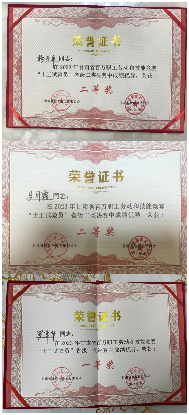 6月20日,由省建設(shè)工會、省勘察設(shè)計(jì)協(xié)會主辦的甘肅省百萬職工勞動和技能競賽“土工試驗(yàn)員”省級二類決賽在甘肅中建市政工程勘察設(shè)計(jì)研究院有限公司拉開帷幕。經(jīng)過一天的激烈角逐,甘肅建科院選手羅澤華在全省65名選手中脫穎而出,榮獲個人一等獎,楊東平和馬月霜兩名選手榮獲個人二等獎。