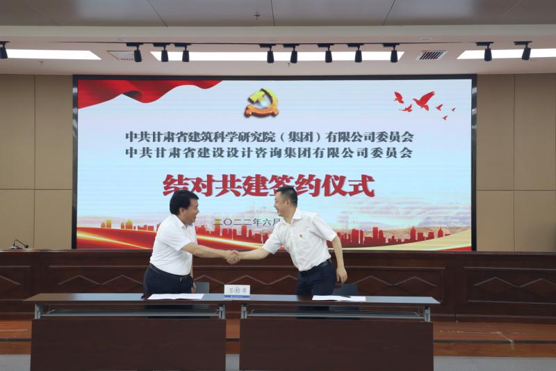 為認(rèn)真貫徹落實(shí)甘肅建投第一次黨代會(huì)精神,著力構(gòu)建強(qiáng)強(qiáng)聯(lián)合、優(yōu)勢(shì)互補(bǔ)、合作共贏的黨建工作新格局,以高質(zhì)量黨建引領(lǐng)保障企業(yè)高質(zhì)量發(fā)展,6月29日下午,建科院(集團(tuán))公司黨委與設(shè)計(jì)咨詢公司黨委在建研大廈12樓舉行結(jié)對(duì)共建簽約儀式。雙方單位領(lǐng)導(dǎo)班子成員,黨支部書(shū)記和相關(guān)部門(mén)負(fù)責(zé)人40余人出席會(huì)議。會(huì)議由建科院(集團(tuán))公司黨委副書(shū)記、總經(jīng)理史智偉主持。