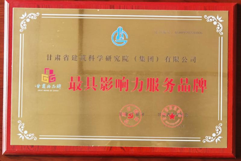 2022年,由省發(fā)展改革委、省工信廳、省商務(wù)廳、省農(nóng)業(yè)農(nóng)村廳、省市場(chǎng)監(jiān)督管理局、省糧食與物資儲(chǔ)備局等單位指導(dǎo),甘肅省質(zhì)量協(xié)會(huì)、甘肅日?qǐng)?bào)社聯(lián)合主辦的第三屆“甘肅好品牌”推選活動(dòng)中,甘肅建科院榮獲“最具影響力服務(wù)品牌”獎(jiǎng)牌,黨委副書記、總經(jīng)理史智偉榮獲“最具影響力品牌人物”獎(jiǎng)杯。