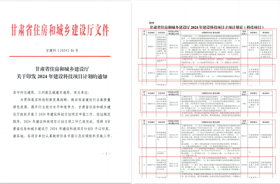 近日,甘肅省住房和城鄉(xiāng)建設(shè)廳2024年建設(shè)科技項(xiàng)目計(jì)劃立項(xiàng)名單公布,甘肅建科院收獲頗豐,共計(jì)立項(xiàng)科研項(xiàng)目5項(xiàng),其中獲批甘肅住建廳首屆首個(gè)揭榜掛帥項(xiàng)目1項(xiàng),科技項(xiàng)目2項(xiàng),作為參加單位立項(xiàng)2項(xiàng)。