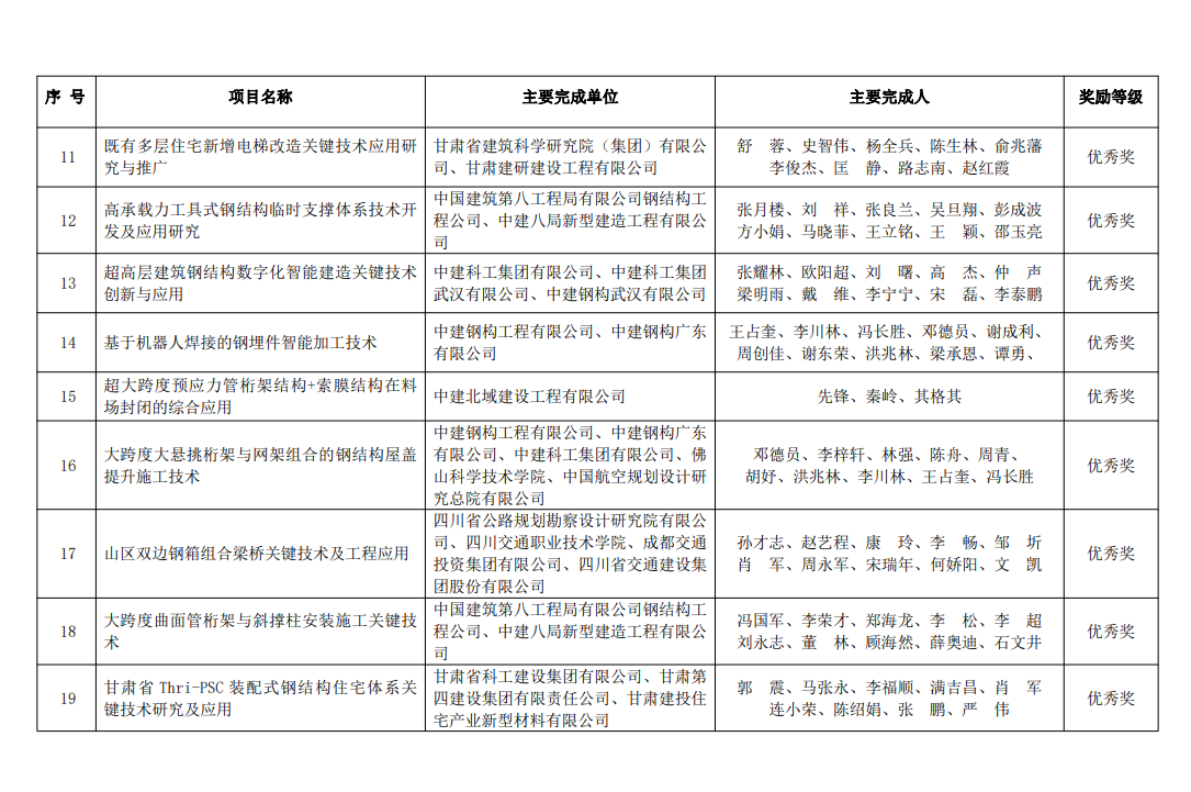 5月5日,由甘肅省建筑科學(xué)研究院(集團(tuán))有限公司巖土技術(shù)中心申報(bào)的“既有多層住宅新增電梯改造關(guān)鍵技術(shù)應(yīng)用研究與推廣”科研課題榮獲2022年度中國(guó)建筑金屬結(jié)構(gòu)協(xié)會(huì)科學(xué)技術(shù)獎(jiǎng)優(yōu)秀獎(jiǎng),表明了國(guó)內(nèi)建筑鋼結(jié)構(gòu)行業(yè)對(duì)公司創(chuàng)新能力與技術(shù)水平的肯定與認(rèn)可。
