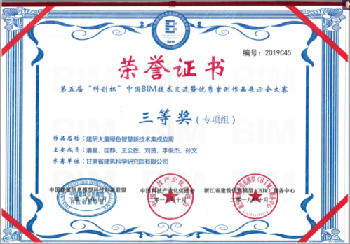 第十八屆中國住博會(huì)暨第五屆“科創(chuàng)杯”中國BIM優(yōu)秀案例作品展示會(huì)于11月8日在北京國際會(huì)展中心順利召開。建科院“建研大廈綠色智慧新技術(shù)集成應(yīng)用”榮獲此次BIM大賽的最佳專項(xiàng)應(yīng)用組三等獎(jiǎng)。
