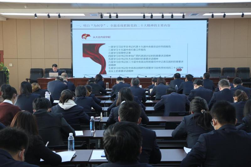 12月23日,甘肅建科院黨委書記、董事長張永志在建研大廈12樓為全司黨員干部職工宣講黨的二十大精神。公司領(lǐng)導(dǎo)班子成員、主管級干部和部分黨員共120余人參加了會議。