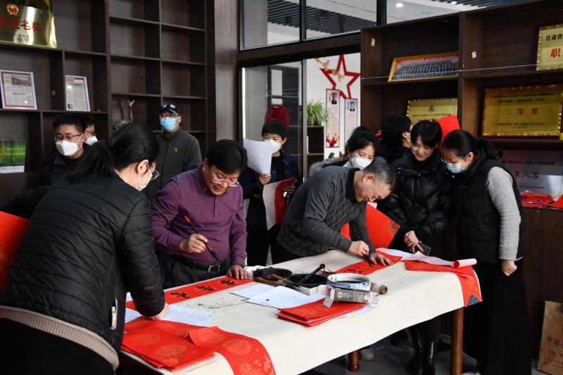 春節(jié)將至,年味漸濃。為弘揚(yáng)和傳承中國(guó)傳統(tǒng)文化,增添喜慶氛圍,1月13日,甘肅建科院工會(huì)在建研大廈12樓舉辦了“迎新納福送春聯(lián)、濃濃墨香暖人心”活動(dòng)。此次活動(dòng)專門邀請(qǐng)公司退休老領(lǐng)導(dǎo)王克成和職工書法愛(ài)好者們現(xiàn)場(chǎng)書寫春聯(lián)、福字,為公司全體職工送上新春祝福。