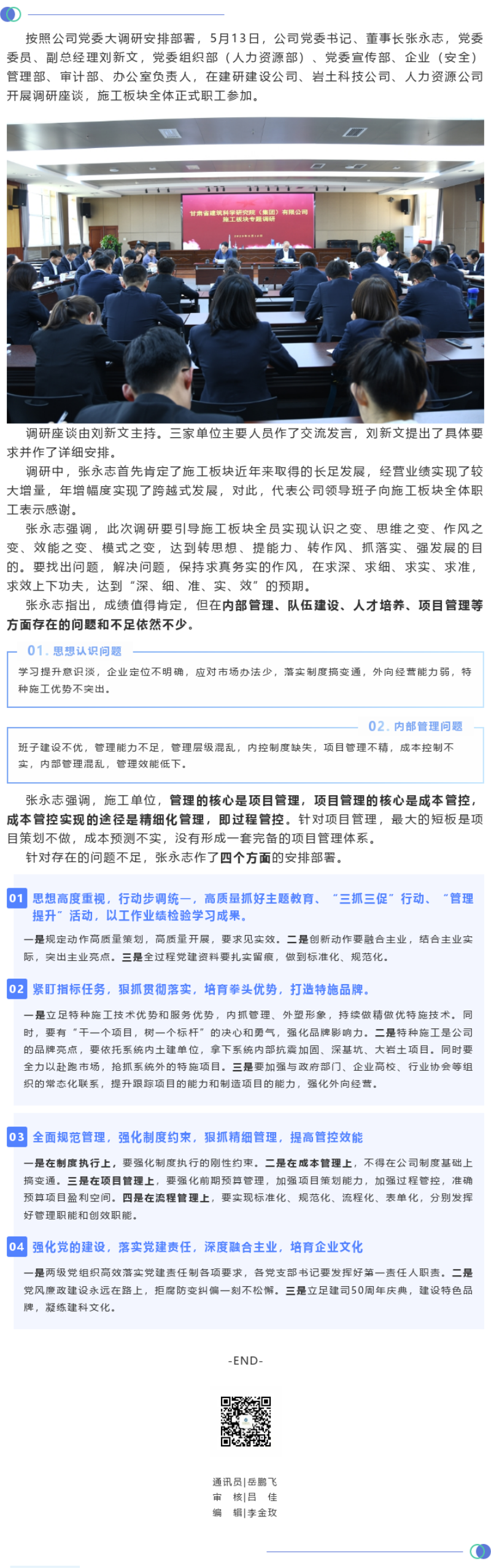 【主題教育】甘肅建科院黨委書記、董事長(zhǎng)張永志組織開展施工板塊專題調(diào)研