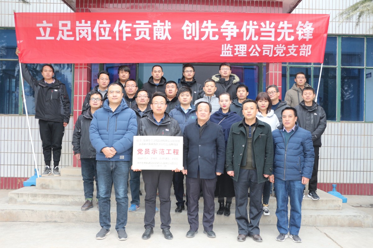 12月17日,公司黨委命名華蘭監(jiān)理公司行使監(jiān)理職能的永靖縣劉家峽庫區(qū)北岸綜合治理與高質(zhì)量發(fā)展項目為“黨員示范工程”,并在項目部舉行授牌儀式。公司紀委書記、工會主席閻新明及有關(guān)部門負責人,華蘭監(jiān)理公司領(lǐng)導(dǎo)班子成員和項目部全體管理人員參加了此次授牌儀式。