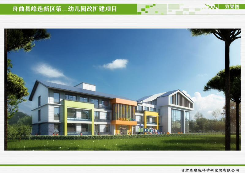 舟曲縣峰迭新區(qū)第二幼兒園項目工程為框架結(jié)構(gòu),總建筑面積2687.48㎡,新建消防水池及水泵房1座,新建門房1座。為保證幼兒的安全,項目在實施過程中采用了隔震支座,減低地震對建筑物造成的危害。項目建成后,將有效緩解舟曲峰迭新區(qū)幼兒入園難的問題,為周邊適齡幼兒提供優(yōu)質(zhì)教育提供環(huán)境優(yōu)美、設(shè)施齊全、功能完備的學(xué)習(xí)、生活場所。
