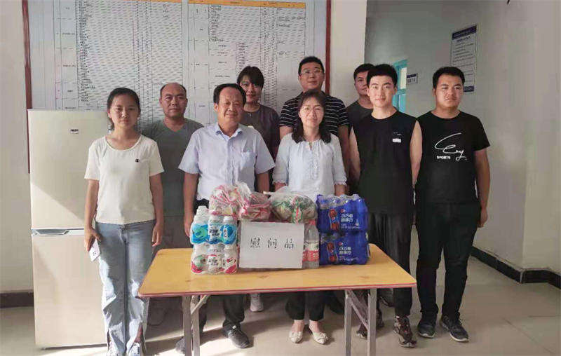 紀(jì)委書記、工會主席閻新明,副總經(jīng)理金學(xué)菊、黨委工作部部長趙欣一行人到蘭州新區(qū)檢測中心,為職工送來涼茶、茶葉、冰糖、毛巾等防暑降溫物品。