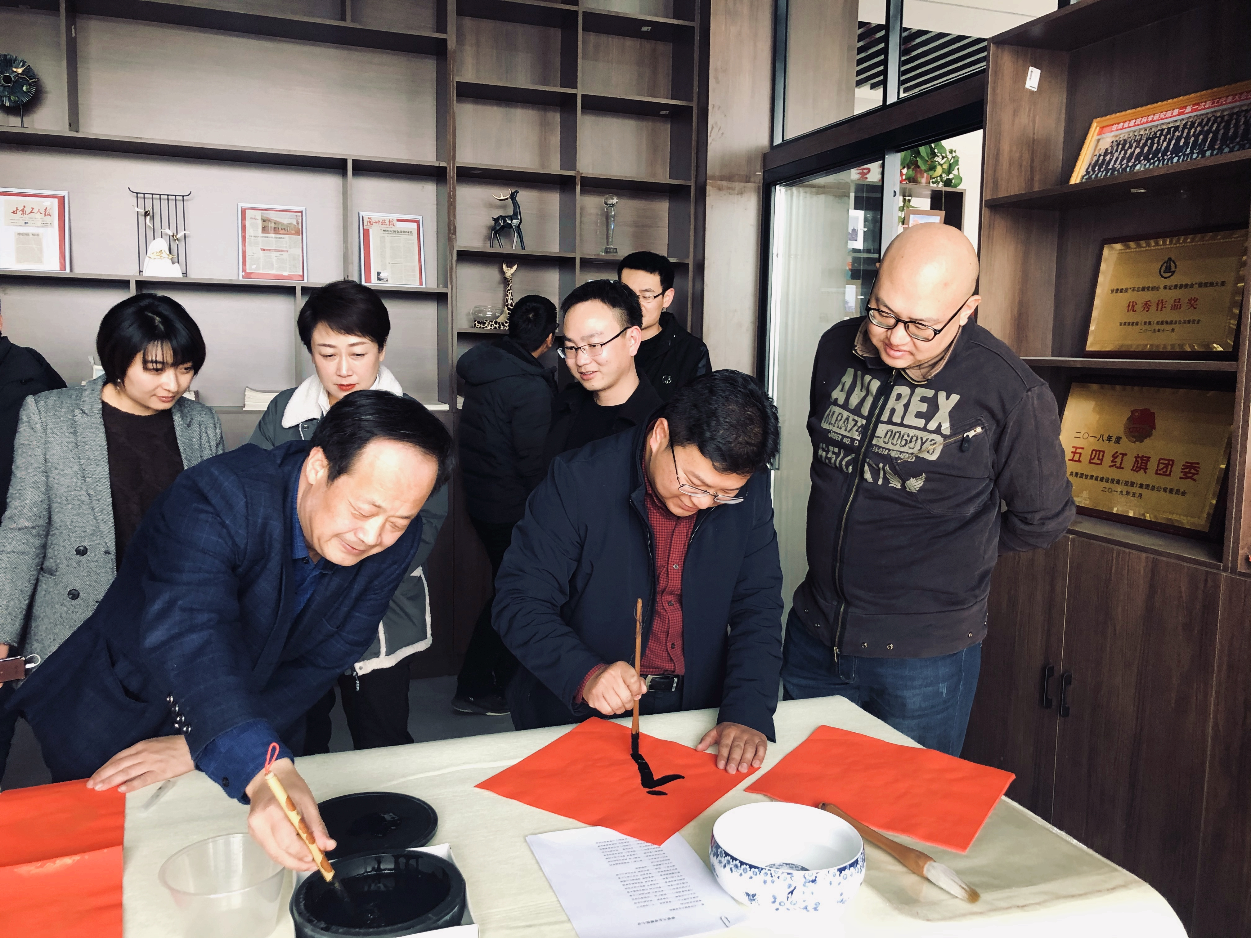春聯(lián)書寫現(xiàn)場氣氛歡快熱烈,濃濃年味撲面而來。公司具有書法特長的領(lǐng)導(dǎo)和職工在公司十二樓活動室樓飽蘸激情,揮毫潑墨。濃濃的墨香,不僅傳遞出傳統(tǒng)文化的魅力,也裝滿了節(jié)日的喜慶。一幅幅傳遞吉祥喜慶、表達美好祝福、歌頌美好生活的春聯(lián),既有揮別鼠年、喜迎牛年的美好愿景,又有祈祝平安吉祥、事順年豐的真摯祝愿,字里行間、紅色韻味中表達著對全體干部職工的良好祝愿和對未來的美好展望。聞訊而來的職工一邊欣賞寫好的春聯(lián),一邊根據(jù)個人愛好挑選稱心的作品,一些職工還自選對聯(lián)內(nèi)容,請他們書寫。在兩個多小時的活動中,上百幅對聯(lián)和福字送到了職工手中。